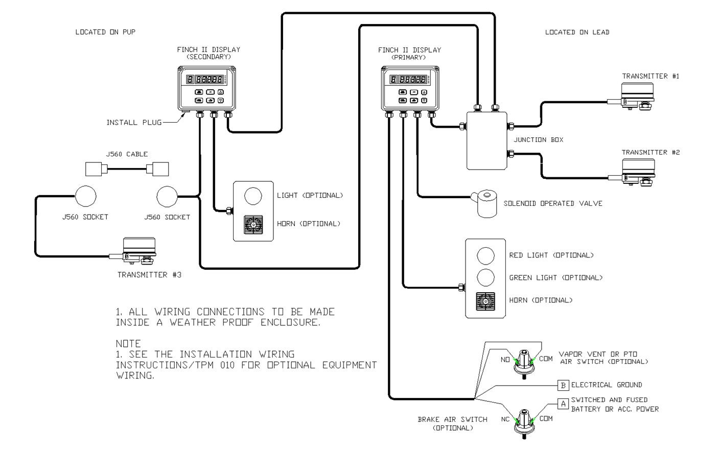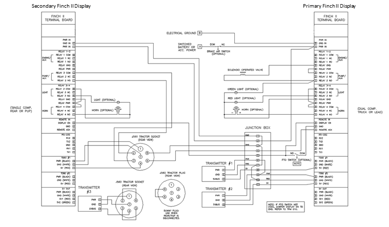 1. The J560 sockets and cable are not required. The TD transmitters #3 and optionally #4 are connected directly to the Secondary FINCH II Display’s TD Transmitter #1 and #2 terminals.
