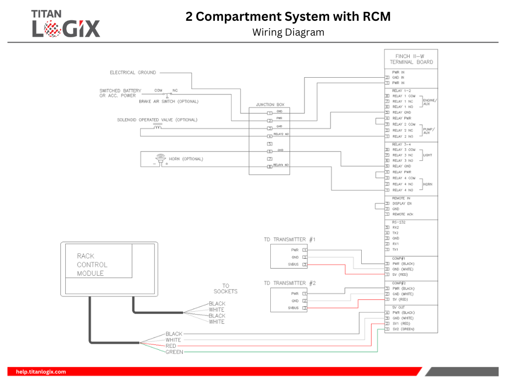 RCM to FINCH Wiring: RCM to 2 Compartment System